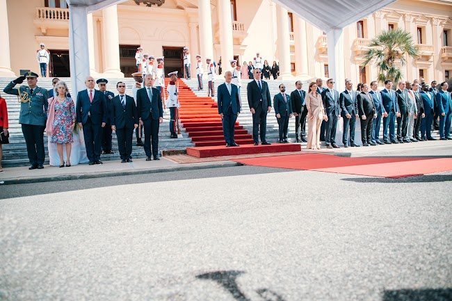 A su llegada al Palacio Nacional, el jefe de Estado de Portugal recibió los honores correspondientes por su alta investidura y de inmediato, los gobernantes procedieron al Pase de Revista Militar y a la presentación de sus respectivas delegaciones.